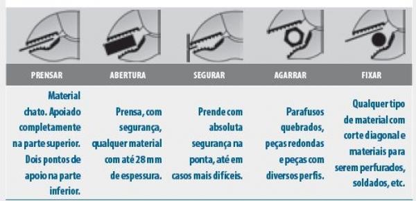 • Sempre utilize o alicate de pressão com a aplicação correspondente a dimensão da peça a ser pega, para que obtenha o desempenho desejado.